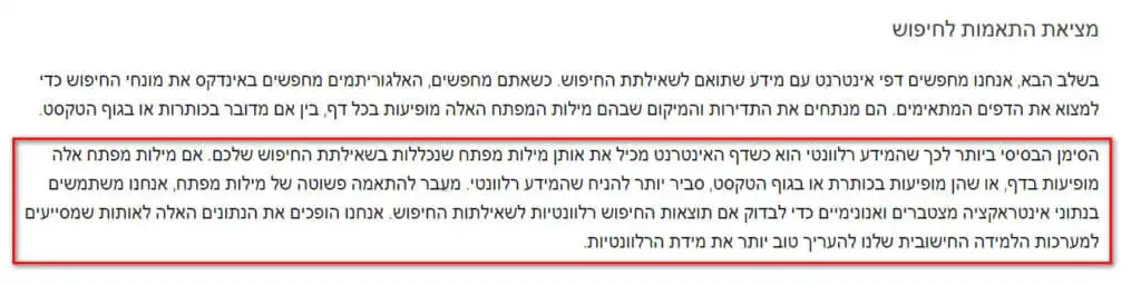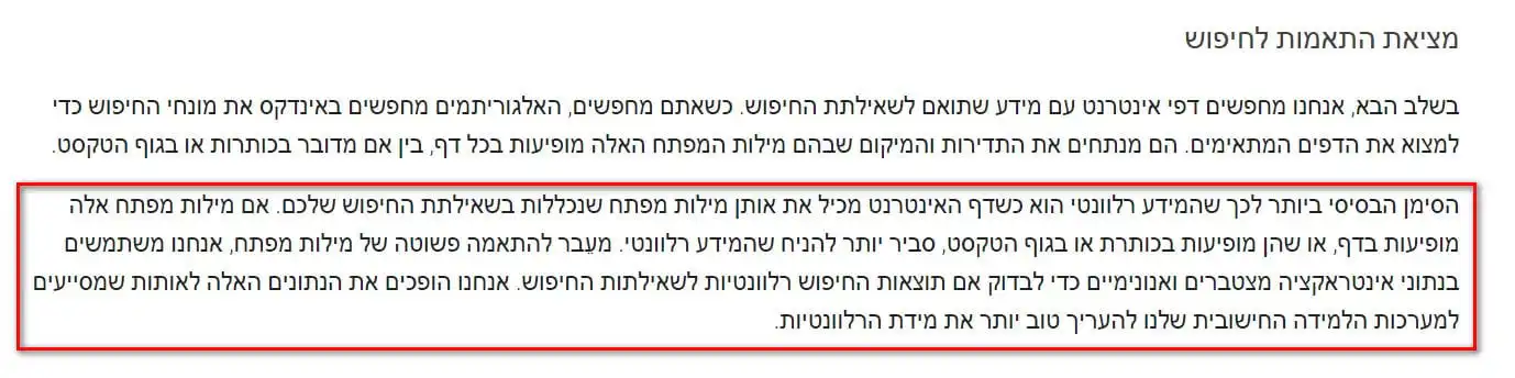 למעשה, הדוח הרשמי של גוגל, “How Search Works”, מציין שהסינגל החשוב ביותר לכך שתוכן מסוים הוא אכן רלוונטי מתבסס על ההתאמה בין מילות המפתח בעמוד לבין שאילתת החיפוש של המשתמש: