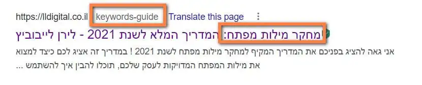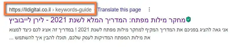 לדוגמא, המדריך שלי למחר מילות מפתח משתמש בביטוי המפתח “keyword guide”, וכך זה נראה בפועל בכתובת ה-URL:
