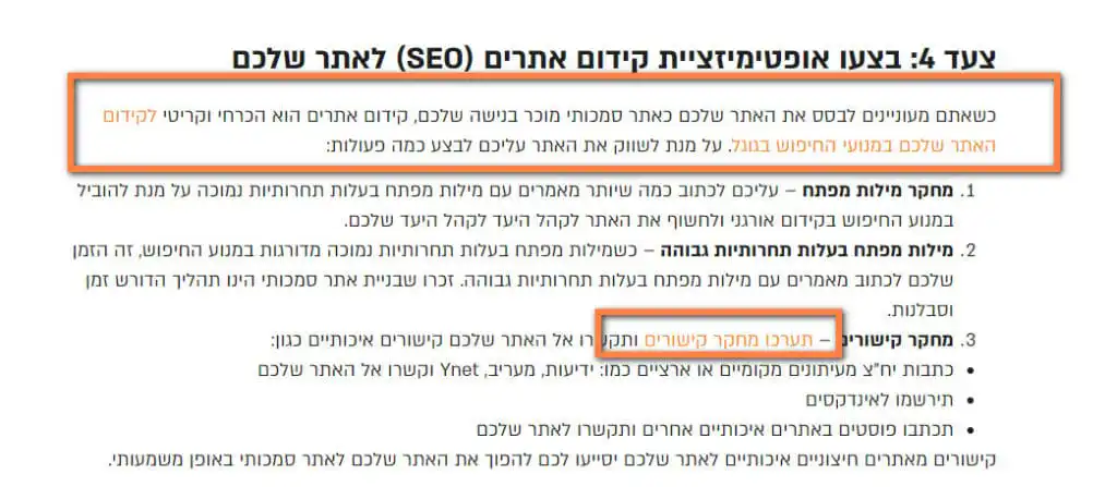שימוש בקישורים חיצוניים לדפים רלוונטיים עוזר לגוגל להבין מה נושא הדף, מעניק אוטוריטה לדף שלכם ומראה בחזה נפוח שהתוכן שלכם איכותי.
