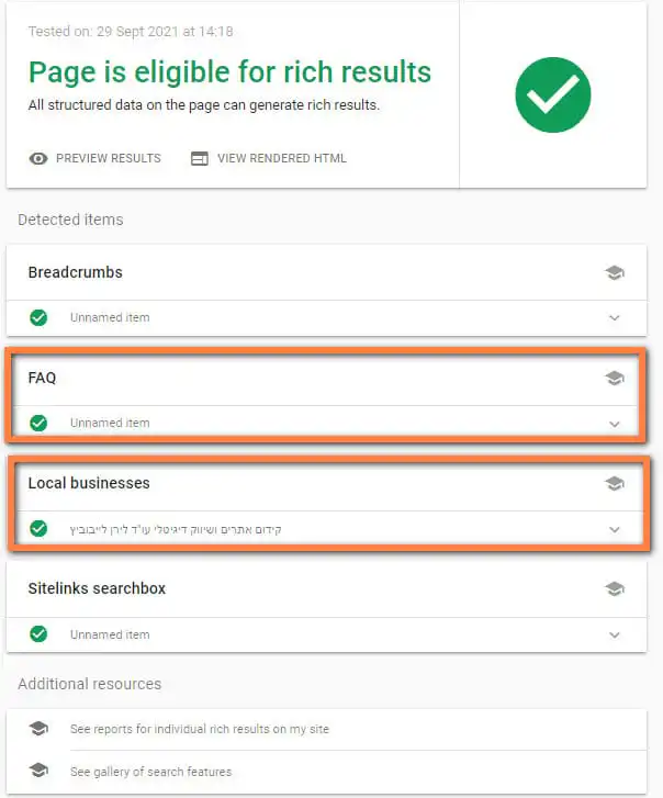 על מנת לבדוק האם הסכמה שלכם אכן עובדת ומותקנת כראוי, ניתן להשתמש בכלי ה- Rich Results Test של גוגל.