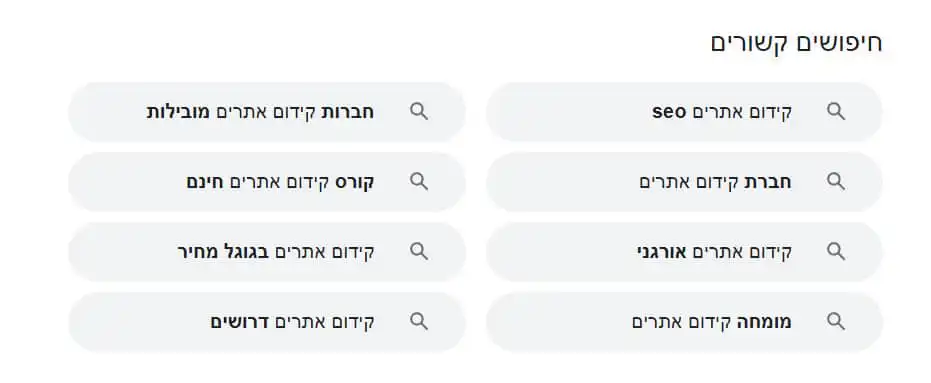 מה שניתן בכל מקרה לעשות הוא לבצע חיפוש למילות המפתח שלכם ולקבל רעיונות בתחתית עמוד התוצאות לוריאציות שונות בהן ניתן להשתמש. לפעמים בגוגל עושים לנו את החיים קלים.
