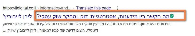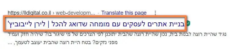 בנוסף, כדאי לכלול את מילת המפתח שלכם פעם בתוך בתיאור העמוד, וזאת בשל כך שגוגל מדגישים ב-bold ביטויים שתואמים את שאילתת החיפוש של המשתמש. זאת דרך נוספת לשפר את יחס ההקלקה שלכם.