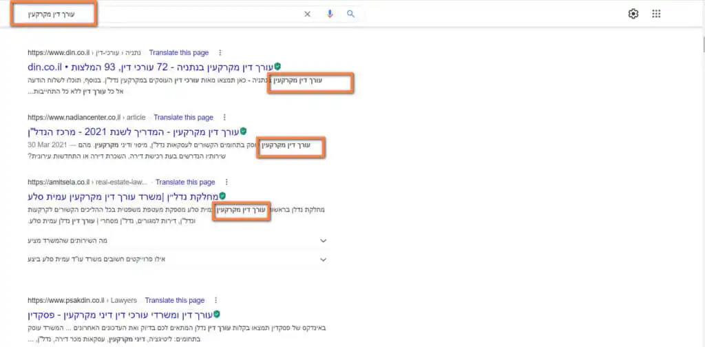הביטויים והמונחים בהם אתם משתמשים בכתובת ה-URL מופיעים בדף התוצאות, וכיום הם מופיעים, גם בגרסת הדסקטופ וגם בגרסת המובייל – מעל תגית הכותרת.