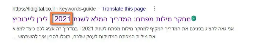 אם תציינו בכותרת ובתיאור את השנה, תוכלו להבהיר למחפש שהתוכן שלכם אקטואלי ועדכני.