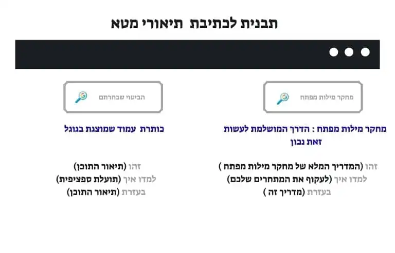 להלן תבנית שבה אני משתמש ועליה אני ממליץ לכתיבת תיאורי מטא (meta description) :