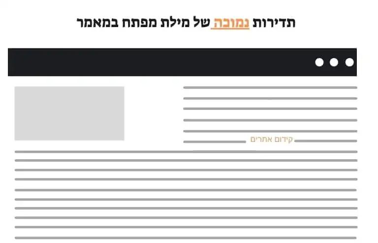 למשל, אם מדובר במאמר שביטוי המפתח הראשי שלו הוא “שיווק במייל”, יש להשתמש בביטוי ישר על ההתחלה.